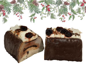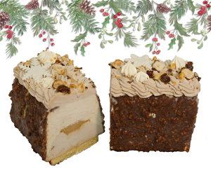 Enrobée d’un glaçage croquant aux éclats de noisettes et d’un biscuit moelleux.